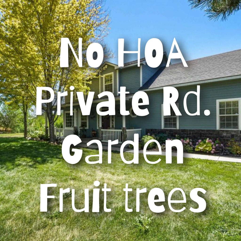 The perfect IDAHO retreat!!! Freedom of NO HOA. A peaceful front & back porch ready to enjoy the cool, crisp autumn breezes. Remodeled (Kitchen, bathrooms, flooring, interior & exterior paint, lighting & plumbing fixtures). Kitchen is spacious w/ an oversized island ready for you to host your next gathering. 4 generous sized bedrooms. Laundry space on main floor. The lot is spacious & tucked away on a private cul-de-sac w/ mature landscaping, a producing garden area + fruit trees (red & green baking apple, peach). Imagine setting up a fruit & vegetable stand at the road to share your produce! Plenty of room to store your toys, build a shop, bring your animals + more. Oversized moveable storage shed is a bonus w/ unlimited possibilities for you to personalize + 2 car attached garage (potential living space, if needed). Property is located out of city limits.