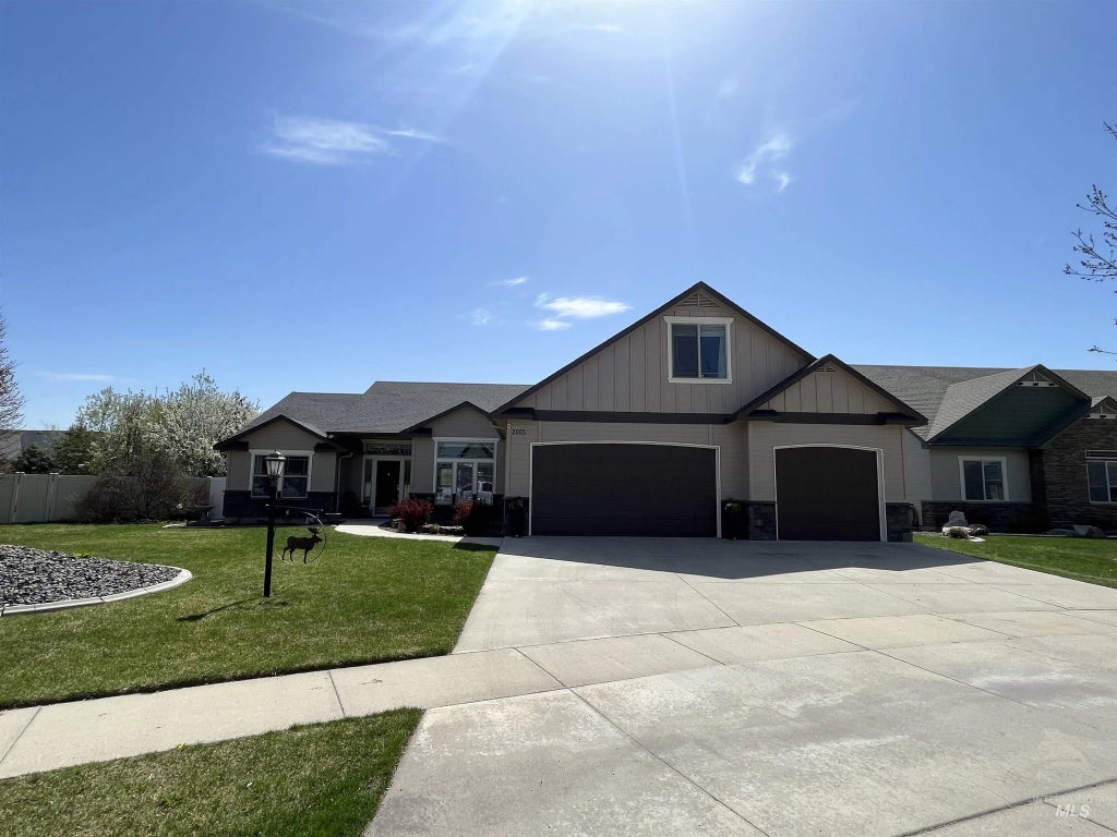 Stunning single level home in Fall River Estates! Serene area with walking paths, near schools, shopping and other amenities including Red Hawk Golf course and Lake Lowell. Walk into an inviting bright and open living room with 10ft ceilings, cozy corner gas fireplace, extensive crown molding. The kitchen features custom cabinets, granite countertops, gas stove, refrigerator, breakfast bar, eating area and a formal dining room that can also be used as an office/den. Practical split bedroom floor plan, all bedrooms on the main level with a spacious upstairs 14X26 bonus room. Ample primary bedroom, the bathroom has a jetted tub, walk in shower, dual vanities good size walk in closet. New exterior paint with an oversized 3 car garage that includes heating and cooling. Inviting back yard with extended patio and corner siting area, full landscaping and fence. This home excludes the metal moose decor that is hanged on the front yard post as well as the ring camera with door and window scensors, security cameras