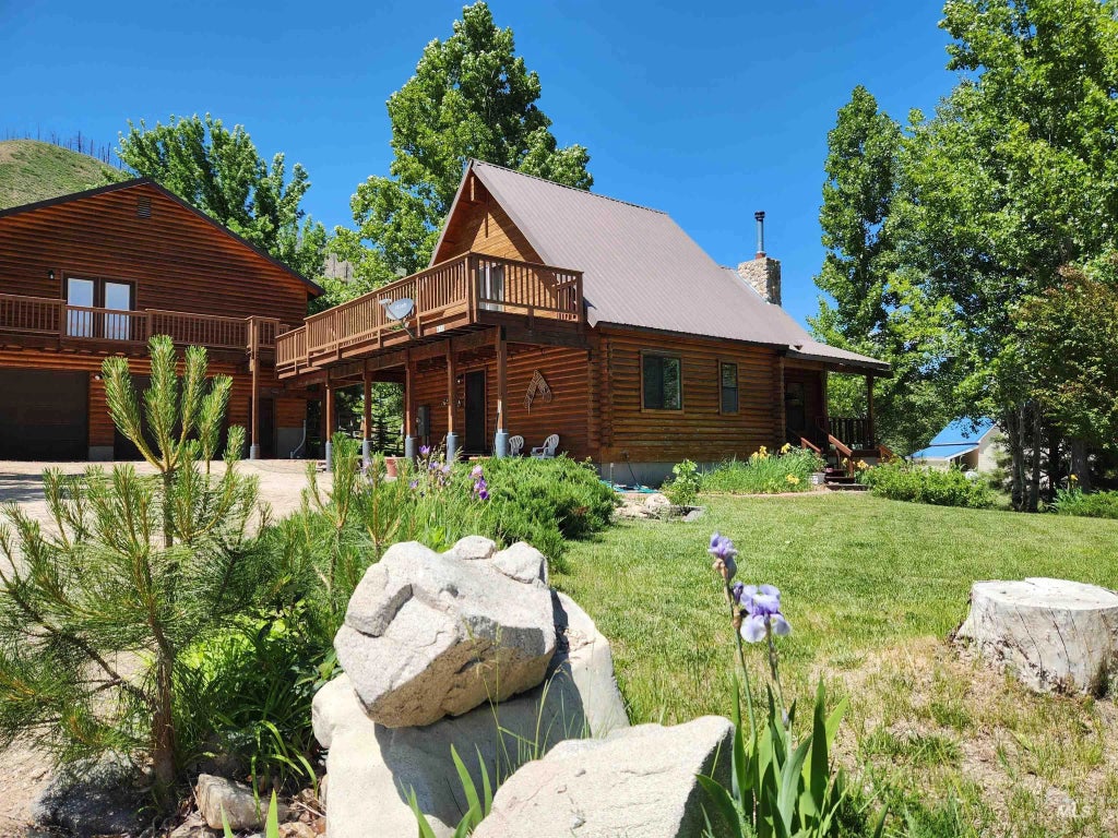 Must see this beautiful one owner log home/ cabin sitting on two corner lots with great views. Anderson ranch reservoir is just 3.5 miles away. Snowmobiling, motorcycle and ATV right off the property. Large garage and shop for all the toys with bedroom, bath and bonus room upstairs. Large 2nd floor deck from house to garage. Landscaped lot with Pine, fruit trees and lawn.