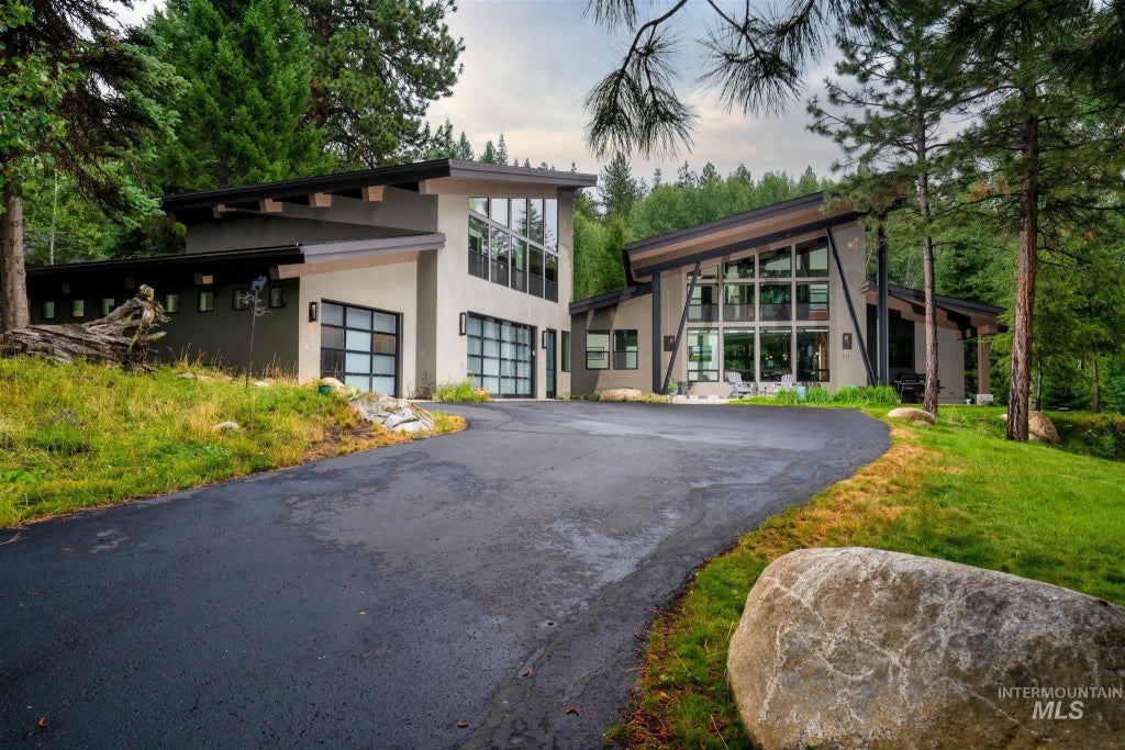 Masterfully executed contemporary design, with grand exposed beams, structural steel posts, columns and beams, this home is an icon of modern architecture. Located in a quiet, private setting among tall quaking aspen, tamarack and pines, bordering 1700 acres of conservation land, it is also close to town, Payette Lake and all that makes McCall a very special place. Seemlessly blending indoor and outdoor spaces, this home is a viewing room to changing light, leaves, and seasons. Sights and sounds of being in nature, in the comfort of an extremely well designed, efficient, and solidly built home of the highest quality including guest quarters with kitchen and sitting room. Oversized 3 car garage, 1,200 sq ft w/ dual electric heaters, dog shower, utility sink. Gourmet kitchen with Wolf 36" 6 burner range/stove, Subzero refrigerator, quartz counters, Brazilian tile floors, beverage frig, bar sink, beer tap. Living room with soaring walls of glass, loft, all bedrooms with ensuite baths, and so much more.