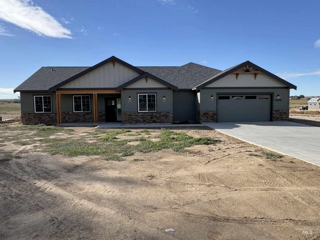 This stunning new construction offers 2409 sq ft of luxurious living space on a spacious 2.01-acre lot, perfect for accommodating large animals. Boasting 4 bedrooms, 2.5 bathrooms, plus an office, this home provides ample space for everyone in the family. The split bedroom layout ensures privacy and comfort for all. The heart of this home is a massive kitchen with a huge pantry, stainless steel appliances, and a breakfast bar, ideal for entertaining or relaxing. The oversized 2-car garage provides plenty of room for vehicles and storage. Step outside to the covered rear patio and enjoy the peaceful surroundings of your expansive property. Located less than 10 minutes from the completely redone Indian Creek Plaza in downtown Caldwell, you'll have easy access to shopping, dining, and entertainment options. Additionally, the property is just minutes from the freeway, making commuting a breeze. For outdoor enthusiasts, Lake Lowell is only a 10-minute drive away.