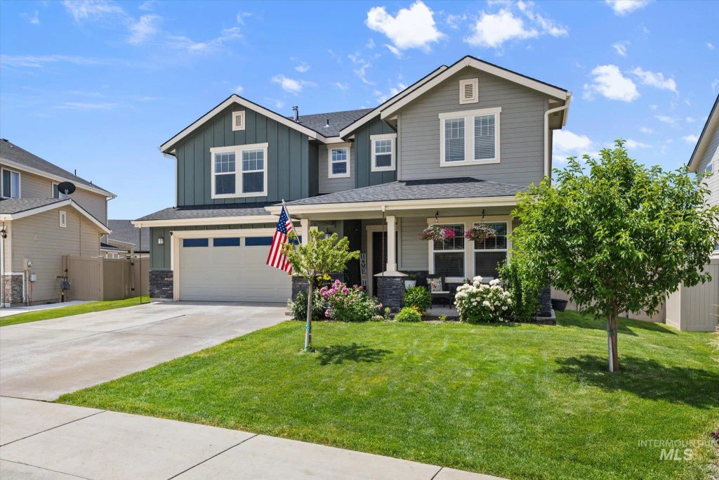 4-Bedroom + Office, 4-Bathroom home on a 0.21 Acre Lot with 3,259 sq ft in a sought-after Star neighborhood. Owners spent 100K+ on upgrades; Features include upgraded hardwood floors, plush carpet, quartz kitchen counters, granite in all baths, soft-close cabinets, and deluxe appliances—double oven, gas range, upgraded fridge, and dishwasher. Two fully tiled walk-in showers, extended kitchen cabinets, and custom mud bench offer added comfort and style. Main-level office with French doors and an upstairs loft with added insulation and ceiling fan. Spacious primary suite with dual walk-in closets and spa-like bath. Electrical upgrades include RV plug, Christmas light outlets, media plugs, and gas hookups. Oversized 2-car garage with insulated doors, deep sink, side-yard access, and gated RV parking. Professionally landscaped with 20x10 covered patio, extended front porch, and vibrant gardens. Pride of ownership throughout—minutes from parks, schools, and downtown Star.