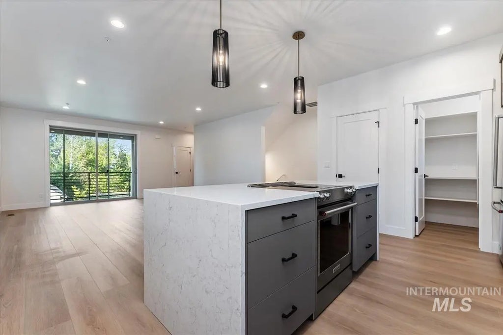 Downtown, Greenbelt & parks right outside your front door. Step into luxury and convenience with this impeccably designed townhome. The elegant Luxury Vinyl Plank flooring flows seamlessly through all common living areas, while floor to ceiling soft close cabinetry provides storage and a sleek modern aesthetic touch. The second floor is where you can entertain in the Great Room or enjoy time relaxing on the covered patio. The Third floor is dedicated to the Primary Bedroom, offering a private retreat with a luxurious ensuite bathroom where you can enjoy the elegance of dual vanities, quartz countertops and floor to ceiling tiled shower. There is also a junior suite upstairs which boasts quartz countertops and stylish tile finishes. Don't miss the 2 car garage!! Located just minutes from the freeway, BSU, Downtown Boise, Center for the Arts, Zoo and so much more!