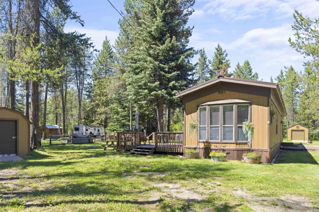 Discover this pristine two bedroom, one bath home offering 728 square feet of comfortable living space. Situated on a large lot, this property features its own well and two RV hookups (water and power at home), making it perfect for outdoor enthusiasts. The property includes two utility sheds perfect for storing all your toys! Enjoy plenty of outdoor space on a perfectly manicured lawn making entertaining and relaxing a snap! located minutes from Cascade Lake and a short drive to Tamarack Resort, this well-maintained home is move in ready and waiting for you.