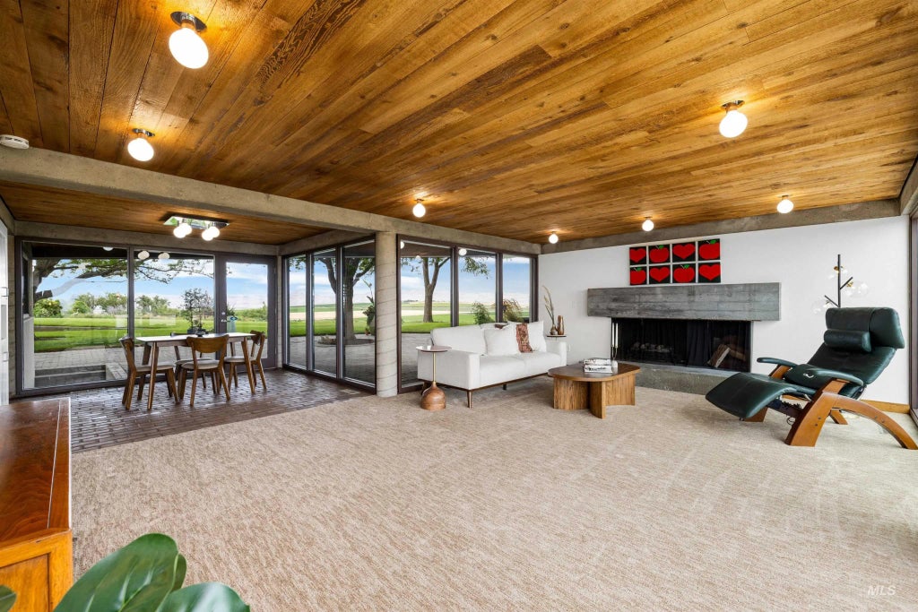 This is a one-of-a-kind architectural gem—a custom 1975 Mid-Mod home thoughtfully constructed from solid concrete and crowned with a sustainable earthen roof, offering the perfect blend of timeless design, efficiency, and grounded living. Set on 2.38 meticulous acres, this home is surrounded by rolling farmland in a quiet country setting, offering captivating 360-degree mountain views. Lush grounds, a zen garden, stock pond, raspberry field, raised gardens, & a hoop-building offers plenty of storage. Spanning over 3,248 sq ft, featuring 4 bedrooms and 2.5 baths, cedar lined library, office space and a layout designed for both privacy and flow. The warmth of cedar-lined walls throughout the home are true to character. Dome skylights add to the architectural intrigue while ushering natural light indoors. Expansive windows and classic mid-century lines, earthy materials and thoughtful architecture create harmonious indoor-outdoor living. This is not just a home—it’s a lifestyle for a true enthusiast of living
