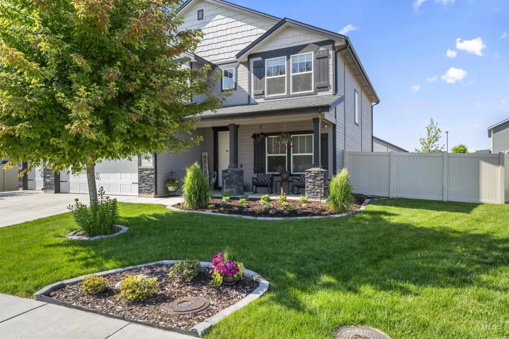 Welcome home! This spacious home in South Nampa sits on one of the largest lots in the subdivision. This exceptional home offers 2,684 sq ft and features 5 spacious bedrooms, 2.5 bathrooms, an office and a wonderful 4 car garage with plenty of room to accommodate your storage and hobby needs. The open floor plan seamlessly connects the living, dining, and kitchen areas, flooded with natural light and 9' ceilings. The chef’s kitchen includes gorgeous quartz countertops, a large island, double oven and gas range and walk-in pantry. Large master suite has a huge walk-in closet, soaker tub, spacious shower, granite countertops, dual vanities. Storage abounds throughout the house. Main upstairs bathroom also has granite counter tops. Large mud room off of the entrance to the garage. Step outside to enjoy a fully fenced backyard with plenty of room to entertain. Enjoy the large covered patio, storage shed, 2 raised garden boxes and agarden area complete with weed blocker and mulch. Top of the line security system includes a glass break monitor and door-adjar alarm. The home comes with a transferrable warranty (5 years remaining). Seller can do a quick close. Click the unbranded tour for virtual walk thru of the house.