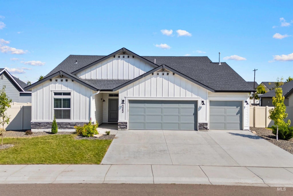 Single level dream with 4 bedrooms, over 2000 sf and a 3 car garage! Wonderful Meridian neighborhood in a convenient location. Enter the large great room boasting an open floor plan, East facing backyard, & EVP flooring. Kitchen offers quartz countertops and island, tile backsplash, wood soft-close doors and drawers, generous dining area, gas range, and walk-in pantry. Large master suite with dual vanities and walk in closet. 3 other generous bedrooms and lots of storage or make one of the rooms a media room or office. Rare 3 car garage and wide side yards at this price point. Plenty of sidewalks and green space throughout the neighborhood and even a park just around the corner. Blinds already installed, ready for you to move in. Close to all Meridian parks, great schools, and Costco.