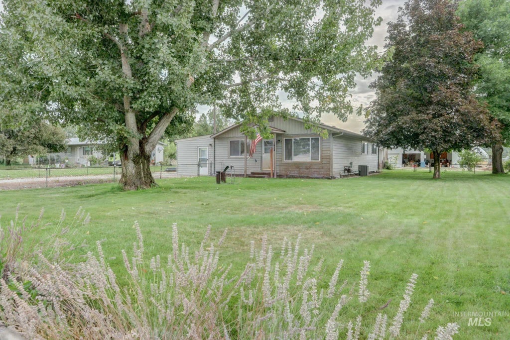 Nice clean single story 3 bedroom, 1 bath home sitting on almost an acre. (0.89 acres). In the county but not far from downtown. No HOA's or CC&R's! Plenty of room for RV Parking. Has a detached 24 x 36 finished shop that includes power, wood stove, & three overhead doors. Just outside of the shop is a frost-free spigot. Main front and back yard are fully fenced and have an automatic sprinkler system. Back of home has a covered cement patio. There's also a storage shed with built-in shelving. Interior of home is cozy with a dining area right by the kitchen and living room. Also, has a sunken room that could be used as an office or family room. Attached to that room is where the pressure tank and filtration system is and there's lots of shelving for storage. The bathroom has been updated with newer flooring, a walk-in shower, and countertops with tiled backsplash. The seller has an antenna and a power boost for TV, so you're not out any cost! Receives channels 2,6,7,9 and 4 channels of PBS. Since 2017, these are the improvements the seller updated: Roof, On demand Hot Water Heater, Gas Fireplace, Pump in Well, Dishwasher, Bathroom Stall & toilet.