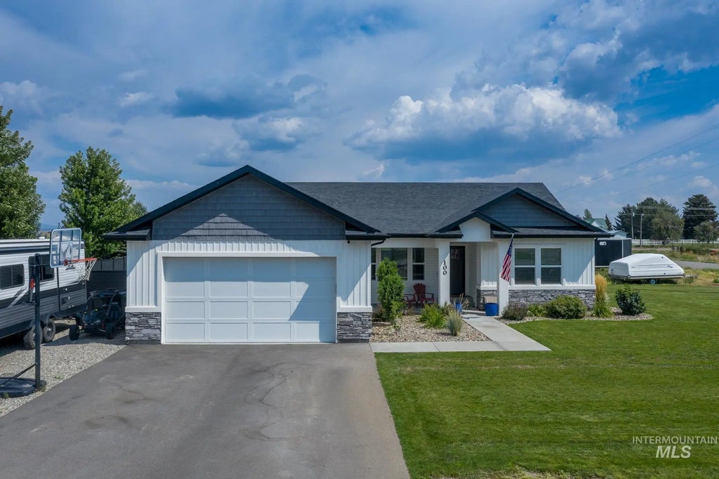 Located at 100 Janice Ln in Carey, this beautifully maintained single-level family home - built in 2022 - is a rare opportunity to own a like new property with breathtaking mountain views. Situated on a .4 acre corner lot, there's ample room to build a shop, garden, or simply enjoy the extra outdoor space. Inside, the home offers 4 beedrooms and 2 bathrooms, blending comfort and modern style throughout. The kitchen is a standout, designed with the culinary enthusiast in mind. It boasts elegant quartzite countertops, shaker cabinets for generous storage, and a large island perfect for gatherings and casual meals. With modern finishes, thoughtful design, and room to grow, this home is a must see!