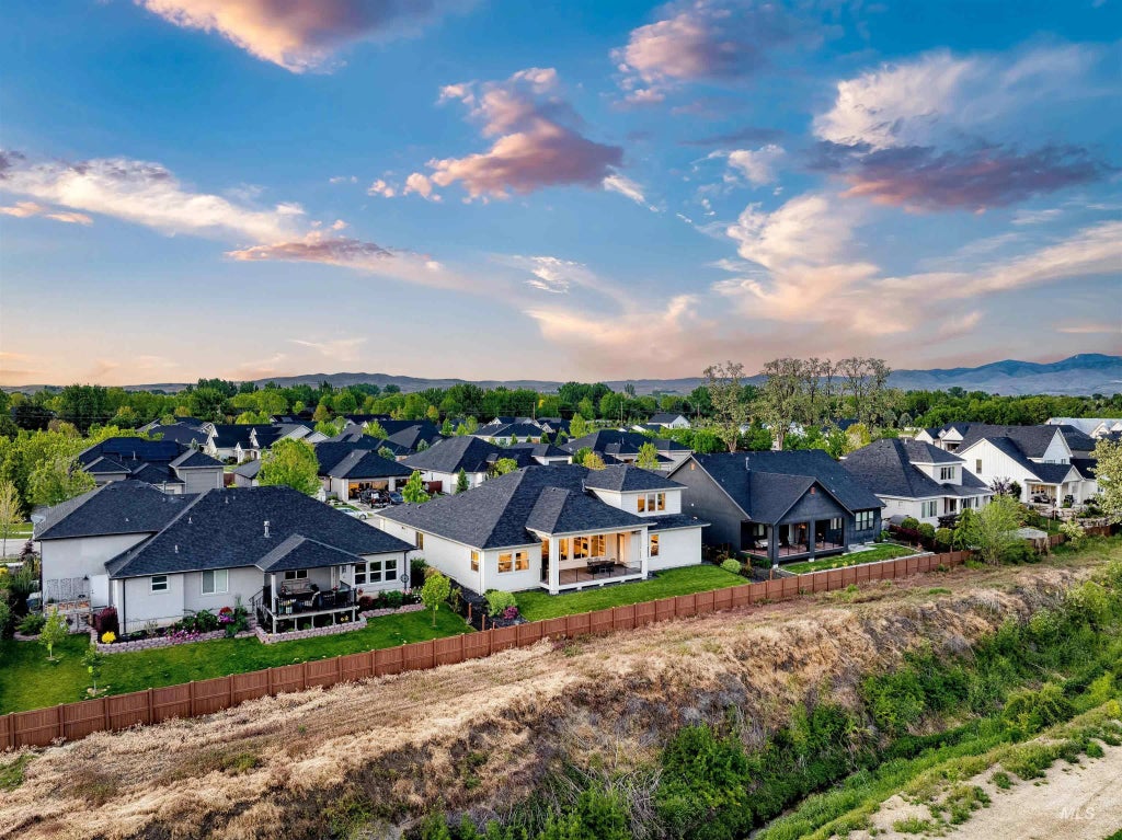 Quality build in central Eagle with all the upgrades already added! 3 bedrooms + office, single level layout features a smart split-bedroom design with soaring ceilings and elevated view overlooking easement space. The light-filled great room opens to a gourmet kitchen with a granite island, gas range, dual ovens and a wraparound walk-in pantry. Primary suite with double vanity, freestanding tub, walk-in shower with dual shower heads and an oversized walk-in closet. Pristine .23-acre lot with covered patio - ideal for entertaining. Office/4th bedroom off entry. Upper bonus with full bath ideal for second living space or guest quarters. Expanded mudroom includes a dog wash station. Fully fenced yard, low-maintenance exterior and low-cost irrigation for the automatic sprinklers. Dream 4+ car garage features a ~41’x18’ RV bay, epoxy floors, and 220V power. Enjoy a niche, 29-home community with pool and common areas, just minutes from downtown Eagle and coveted schools.