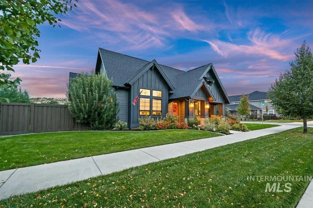 Discover a rare opportunity to own a unique former Alturas Parade home with interiors by award-winning local designer Lauren Smyth. This thoughtfully designed 3 bedroom, 3 bathroom home—with both a den and an office—sits on a prime corner lot with an alley-load garage. The original owner has completed extensive upgrades to make this home truly turnkey: a built-in Generac generator, paver patio and walkways, automated window coverings and patio shades, custom Elfa closet systems, a 10x12 storage shed, central vacuum with attachments, epoxy garage floors, built-in garage cabinetry, and raised garden beds surrounded by mature fruit trees. Every detail has been curated for comfort, convenience, and style. Beyond the home itself, Cartwright Ranch at Hidden Springs offers one of Boise’s most coveted lifestyles. Nestled in the Boise Foothills, you’ll find miles of trails right out your door, access to community pools, fitness facilities, parks, and gathering spaces—all just 15 minutes from downtown Boise. Here, foothills living means a perfect blend of recreation and relaxation. Whether you’re enjoying sunsets from your custom patio or joining neighbors at community events, this home makes it easy to embrace the idyllic Hidden Springs lifestyle.