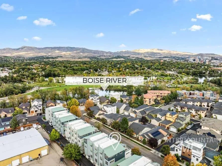 Welcome to your stunning riverfront retreat, just steps from the Boise River. From the rooftop deck, take in breathtaking views of Downtown Boise, or unwind by the private community pool and clubhouse overlooking the water. Enjoy direct access to the Boise Greenbelt, a nearby kayak and surf park, and an array of local dining options. This rare end-unit townhome features soaring ceilings, expansive floor-to-ceiling windows, abundant natural light, and hardwood floors throughout. The chef’s kitchen is equipped with stainless steel appliances, quartz countertops, a prep island, and a spacious pantry. The primary suite includes dual vanities, a spa-like bath, and an oversized closet. Blending luxury with convenience, this low-maintenance, lock-and-leave home offers the very best of Boise riverfront living.