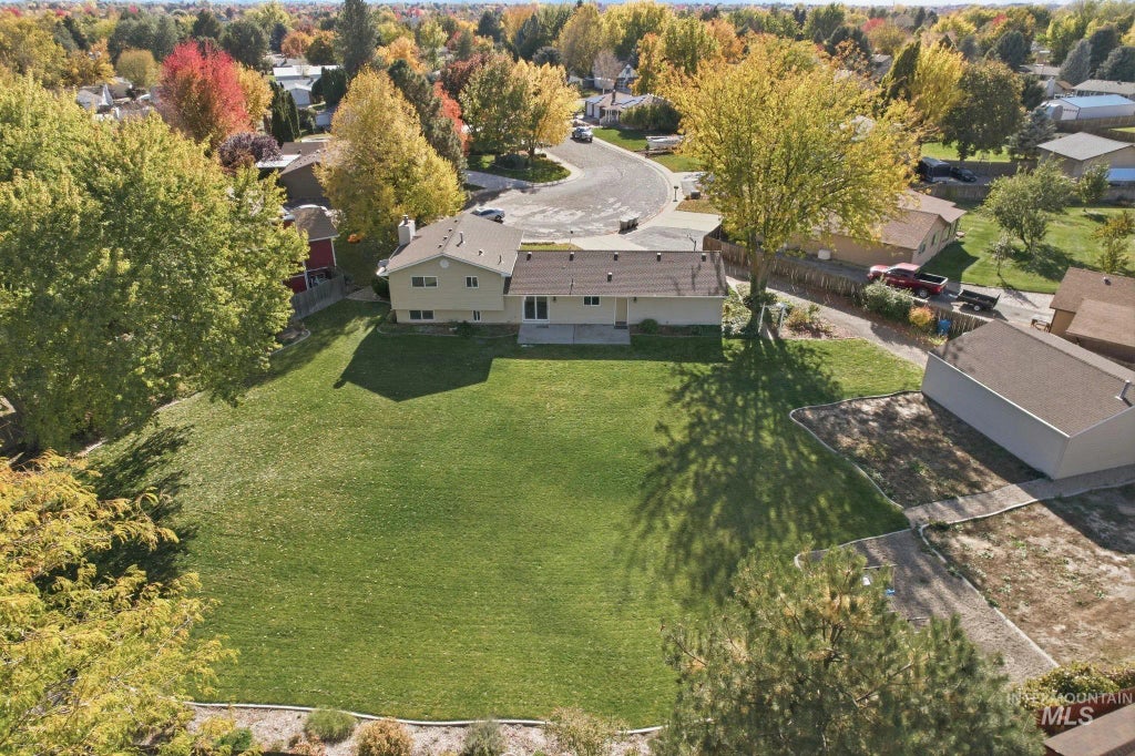 An absolute MUST-SEE property! This 4 bedroom 3 bath 1968 sq ft home sits on a hard to find OVER HALF-ACRE IRRIGATED LOT in a beautiful Boise neighborhood with NO HOA and NO CCRs. The gorgeous yard is sodded, fenced (other than wing fencing), has full auto sprinklers and drip lines, and enough room for your toys or RV with plenty of yard to spare! No worries about the high cost of water to keep your lawn green, as irrigation is just $120/year for unlimited use, and the irrigation company just put in a new pump. Enjoy the mature raspberry and strawberry bushes, grape vines, garden area, roses, lavender, garden areas, and mature trees including a walnut tree. Home boasts steel siding and 40 year shingles installed in 2004. The large 30'x30' shop has concrete flooring, electricity including 220 outlet, and pulldown stairs allowing for overhead storage. The garage is large enough to fit an oversize pickup, plus has an additional storage room with shelving. Enjoy a living room on the main level and a larger family room with a wood stove on the lower level. New HVAC in 2024, new carpet and engineered hardwood flooring throughout the home in 2025, all new toilets and vanities 2025.